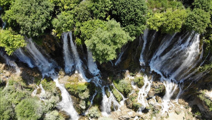 Sıcaklıkların artmasıyla şehrin stresinden ve gürültüsünden uzaklaşıp vakit geçirmek için doğayla iç içe olan serin alanlara yönelen vatandaşlar, 40 metreden akan buz gibi suyu ve doğal güzelliğiyle öne çıkan Girlevik Şelalesi mesire alanında serinliyor.