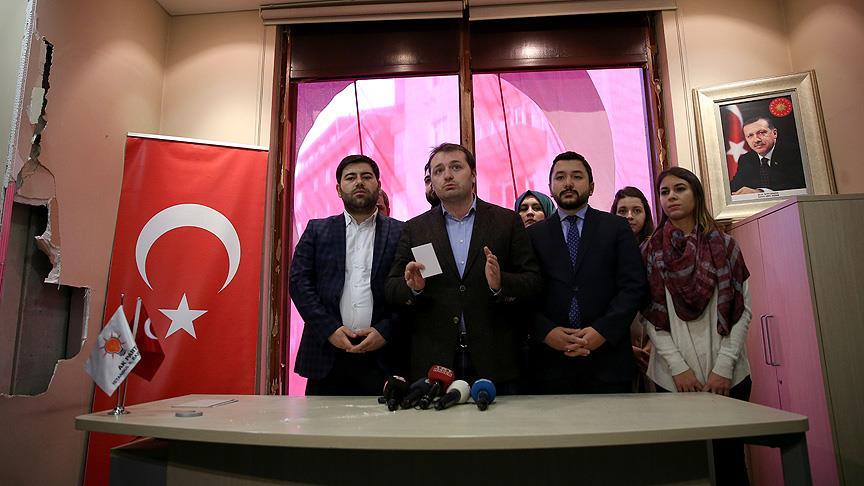 AK Parti Gençlik Kolları Genel Başkanı Melih Ecertaş, AK Parti İstanbul İl Başkanlığında saldırı sonucu hasarın oluştuğu odada yaptığı basın açıklamasında, saldırıyı lanetlediklerini söyledi.