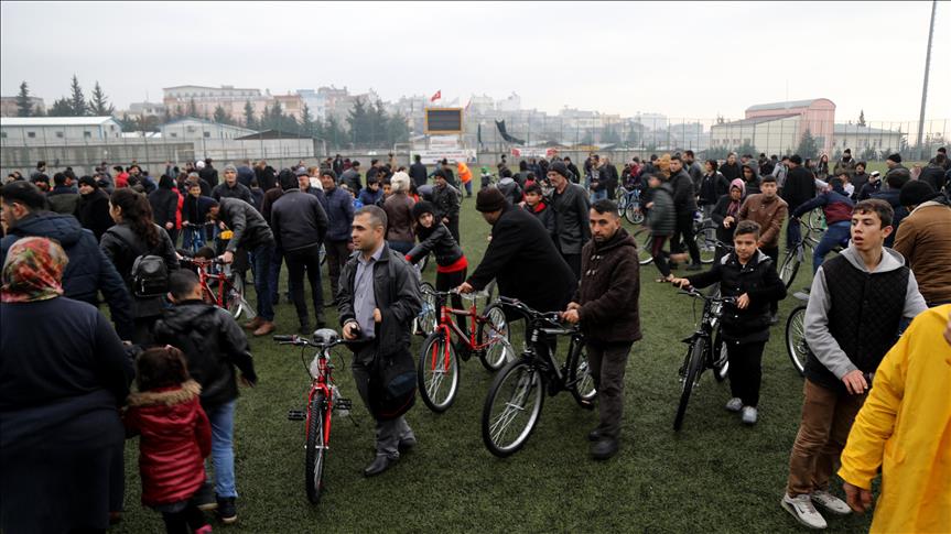 Kilis 7 Aralık Stadı'nda düzenlenen törende, "15 bin eve 15 bin bisiklet" kampanyası kapsamında sigarayı bırakma sözü veren ve bu sözü imza altına alınan kişilerin çocuklarına bisikletleri, Kilis Belediye Başkanı Hasan Kara tarafından teslim edildi.