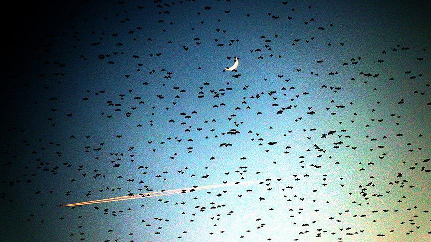Gökyüzünde yaklaşık bir saat görsel şölen sunan sığırcıklar, daha sonra gözden kayboldu.