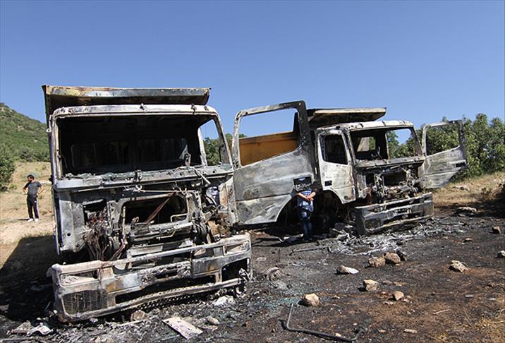 Pervari ilçesinde yol yapım şantiyesindeki 4 iş makinesi kundaklandı.