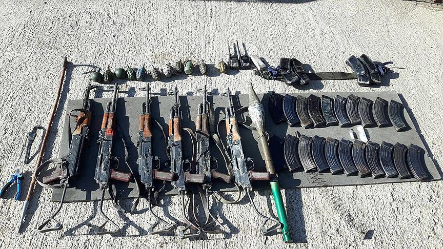 Teröristlerle beraber, 6 kalaşnikof piyade tüfeği, 11 el bombası, anti tank roket mermisi, 2 telsiz ve çok sayıda mühimmat ele geçirildi.