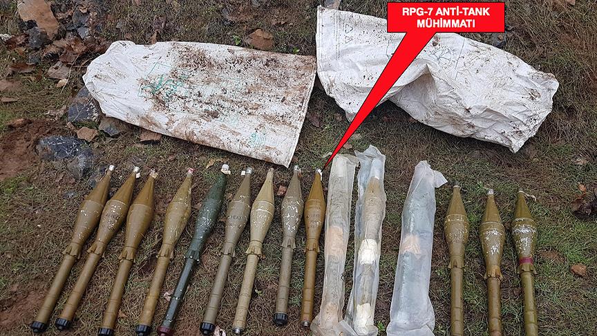 Aramada, teröristlerce kaya ve toprakla örtülen iki çuval içerisinde gizlenen 15 RPG-7 anti-tank mühimmatı ele geçirildi.