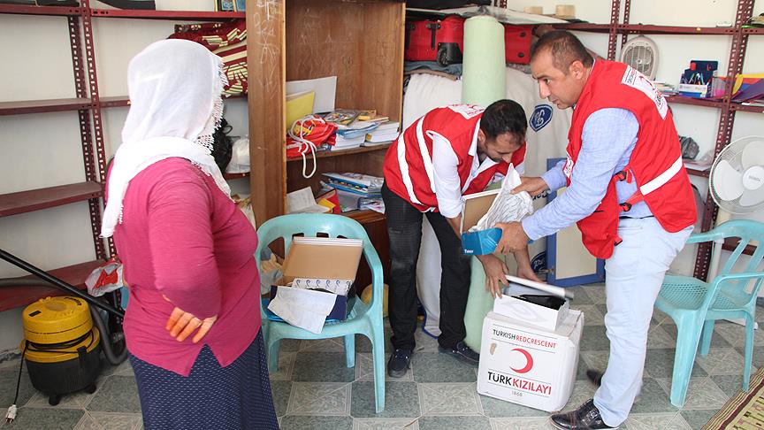Türk Kızılayı tarafından gönderilen giyim ve gıda yardımları, Şırnak'ın Silopi ilçesinde terör mağduru ailelere dağıtıldı.