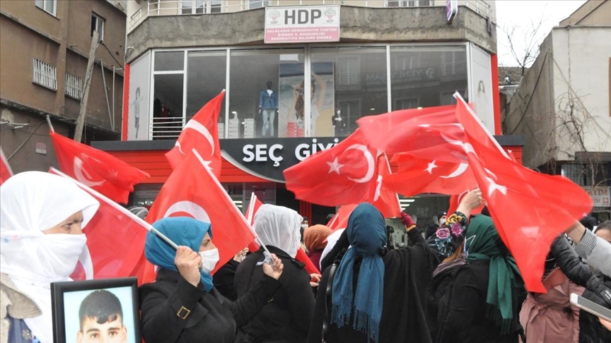 PKK'lı teröristlerce çocukları dağa kaçırılan, yakınlarını terör saldırılarında kaybeden Şırnaklı kadınlar ile şehit ve gazi aileleri, Şehit Üsteğmen Mehmet Esin Caddesi'nde gerçekleştirdikleri yürüyüşün ardından HDP İl Başkanlığı önüne geldi.