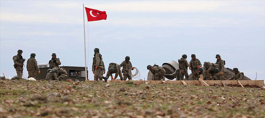 Türkiye sınırından Suriye Eşmesi'ndeki tel örgülere kadar 210 metrelik alanda ise güvenlik tedbirleri dikkat çekiyor. Yaklaşık 10 dönüm alan üzerine yapılması planlanan türbe yapım çalışmalarında, 82 askeri personel görev yapıyor. 22 iş makinesinin çalıştığı alanda 5 tank ve 4 zırhlı personel taşıyıcı konuşlanmış durumda.