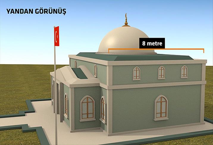 Görsellere göre, Suriye Eşmesi'nde yapılacak, 4 metre uzunluğunda, 8x10 metre genişliğinde ve kubbeli olarak inşa edilecek olan yeni türbesinin önünde büyük bir bayrak direği bulunacak.
