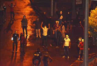 Gazi Mahallesi Adem Yavuz Caddesi'nde toplanan ve aralarında maskeli kişilerin de bulunduğu bir grup, slogan atarak izinsiz gösteri yaptı.