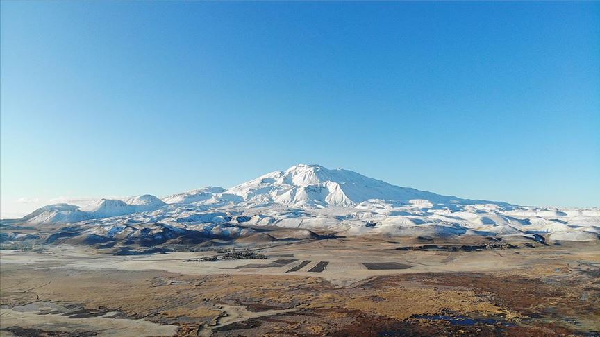 Yıl boyunca doruğundaki buzulların erimediği dağ, yılın bu dönemlerinde de karla kaplı görüntüsüyle adeta görsel bir şölen sunuyor.