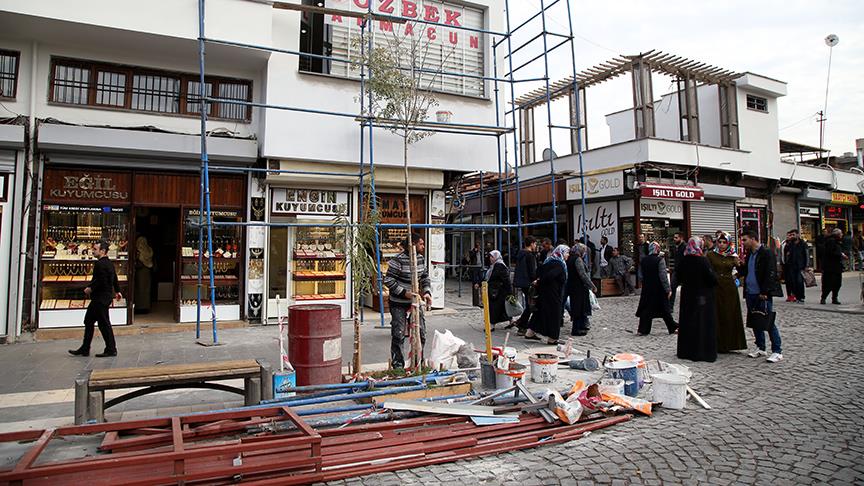 Bir süre önce SGK ve vergi borçları ertelenen, Vakıflar Genel Müdürlüğünce 1 yıl kira bedeli alınmayan ve faizsiz 50 bin liralık krediye kavuşturulan esnafın son olarak iş yeri, "Sokak Sağlıklaştırma Projesi" kapsamında modernize ediliyor.
