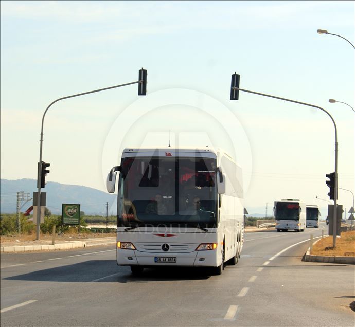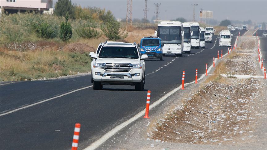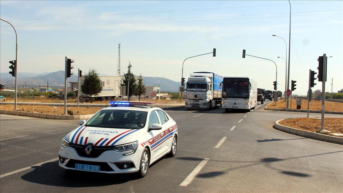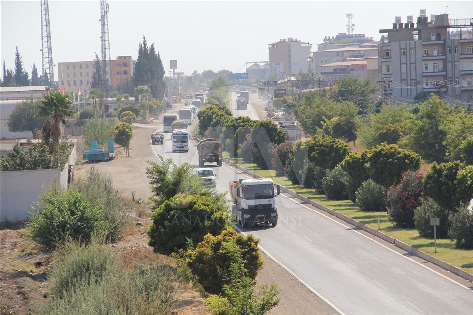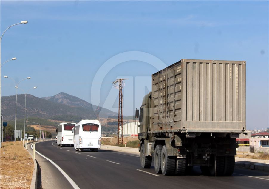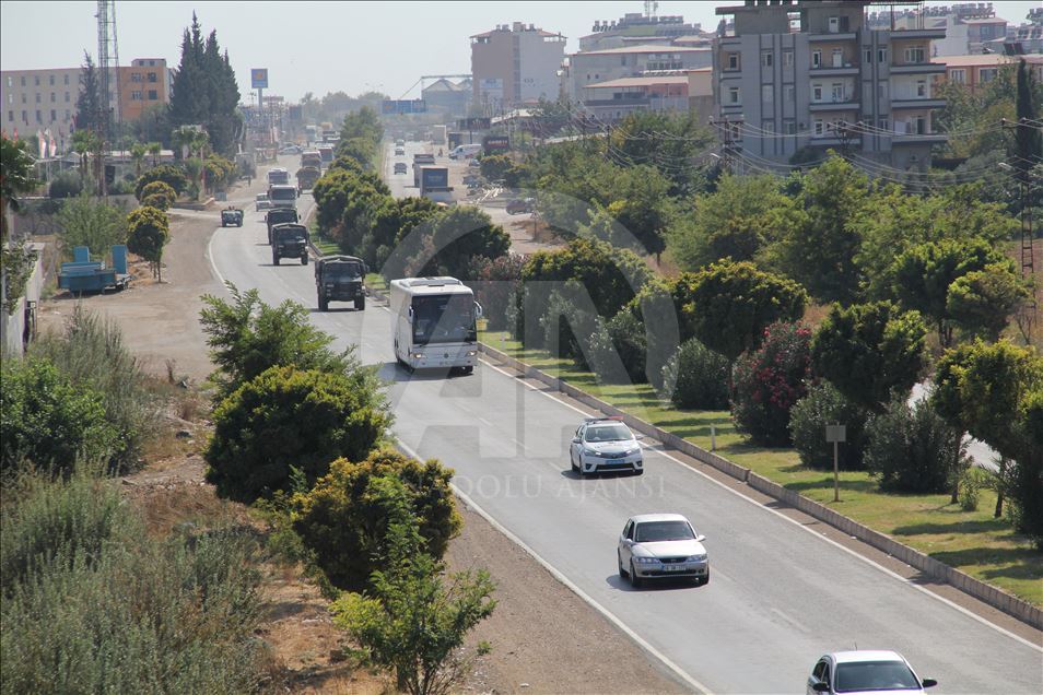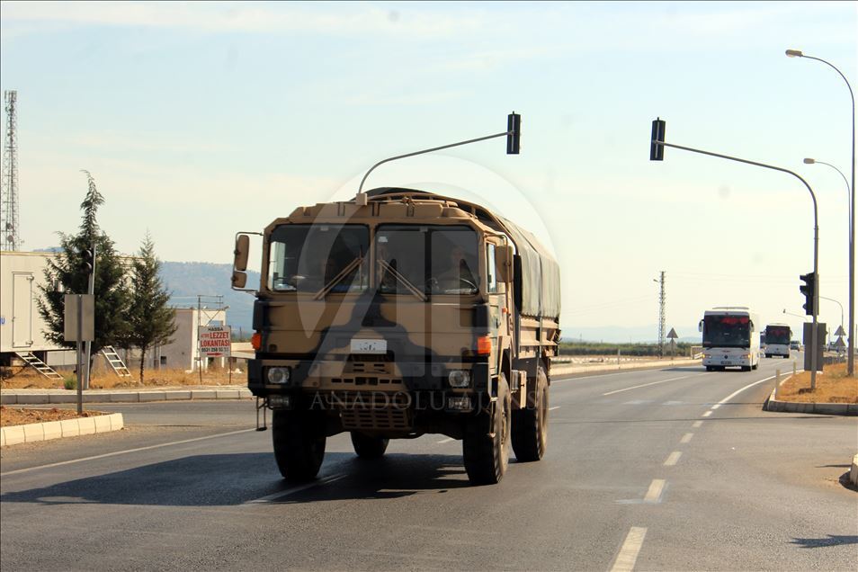Şanlıurfa'daki 20. Zırhlı Tugay Komutanlığından çıkış yapan ve askeri personel taşıyan 4 otobüslük konvoy, güvenlik önlemleri altında sınır hattındaki Akçakale ilçesine ulaştı.
