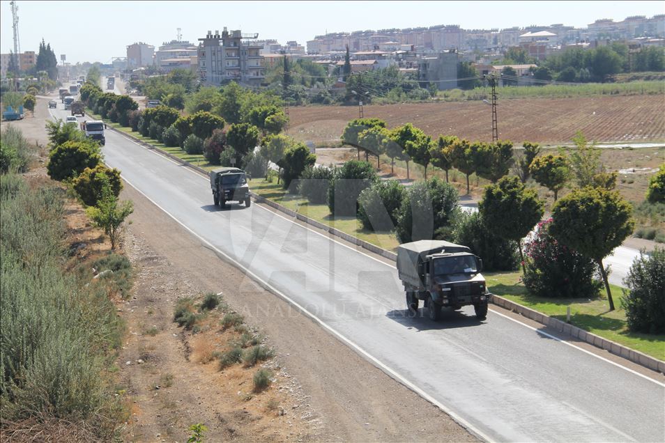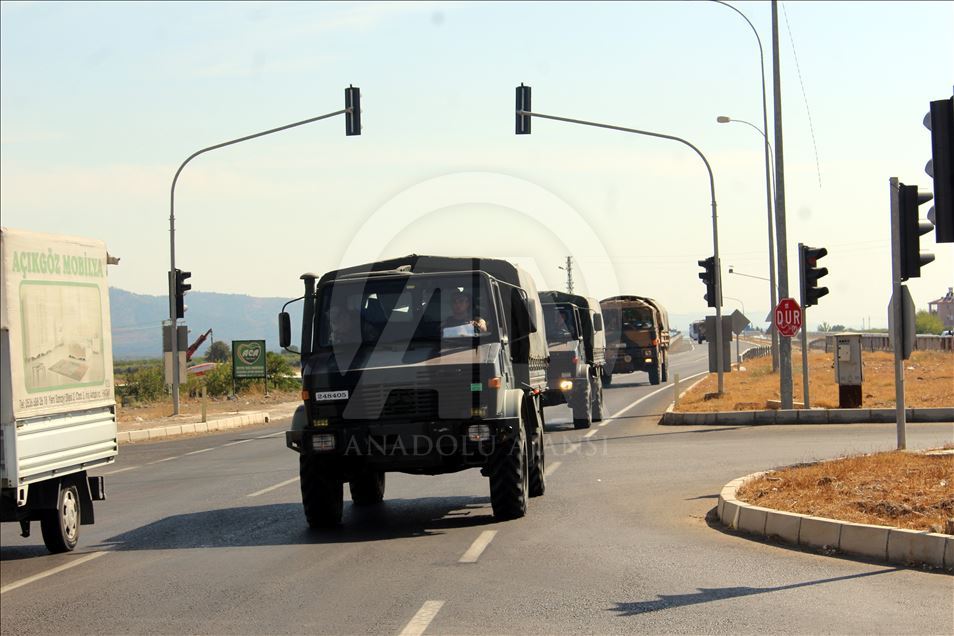 Türk Silahlı Kuvvetleri (TSK) tarafından Suriye sınırındaki askeri birliklere komando takviyesi sürüyor. Çeşitli bölgelerden Hatay'a gelen çok sayıda komando, Kırıkhan ve Hassa ilçelerinden geçerek Gaziantep istikametine doğru hareket etti. Komandoların sınır birliklerine takviye amaçlı gönderildiği öğrenildi. ( Hilmi Tunahan Karakaya - Anadolu Ajansı )
