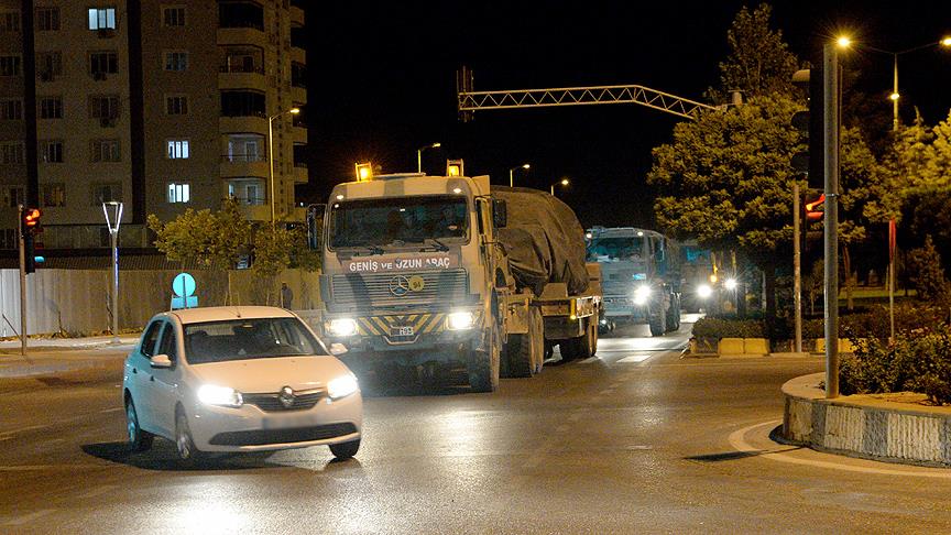 Yoğun güvenlik önlemleri eşliğinde kent merkezinden geçen askeri araçların, Suriye sınırında konuşlu bulunan birliklere takviye amaçlı gönderildiği öğrenildi.