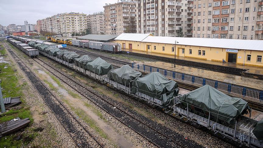 Çeşitli birliklerden sevk edilen, Tekirdağ Garı'ndan vagonlara yüklenen, zırhlı personel taşıyıcıların da bulunduğu çok sayıda askeri aracı taşıyan tren Diyarbakır Garı'na geldi.