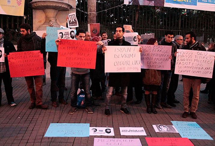 Galatasaray Lisesi önünde toplanan gruptakiler, "130 bin ölü, 200 bin tutuklu, 2 milyon 300 binden fazla mülteci", "Esed'e karşı-El Kaide'ye karşı, Suriye'ye özgürlük" yazılı dövizler taşıyıp çeşitli sloganlar atarak, Suriye'de yaşananları protesto etti.