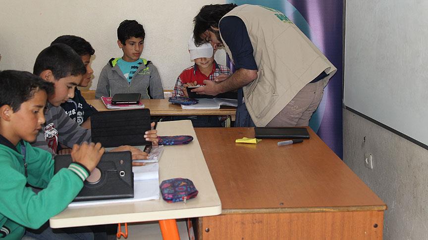 Türkiye'de eğitim gören 350 bin Suriyeli çocuktan 16 bini Reyhanlı ilçesindeki 48 okulda eğitim görüyor. Proje kapsamında ilk etapta 9 pilot okulda 2 bin tablet dağıtıldı.