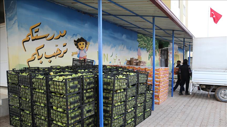 Meyve ve çikolatalar, Suriyeli öğrencilerin eğitim gördüğü merkezlere gönderildi.