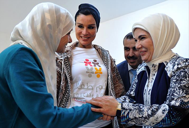 Cumhurbaşkanı Recep Tayyip Erdoğan'ın eşi Emine Erdoğan ile Emine Erdoğan'ın daveti üzerine Türkiye'ye gelen Katar Emirinin annesi Şeyha Moza, Nizip ilçesindeki konteyner ve çadır kente barınan Suriyelileri ziyaret etti.