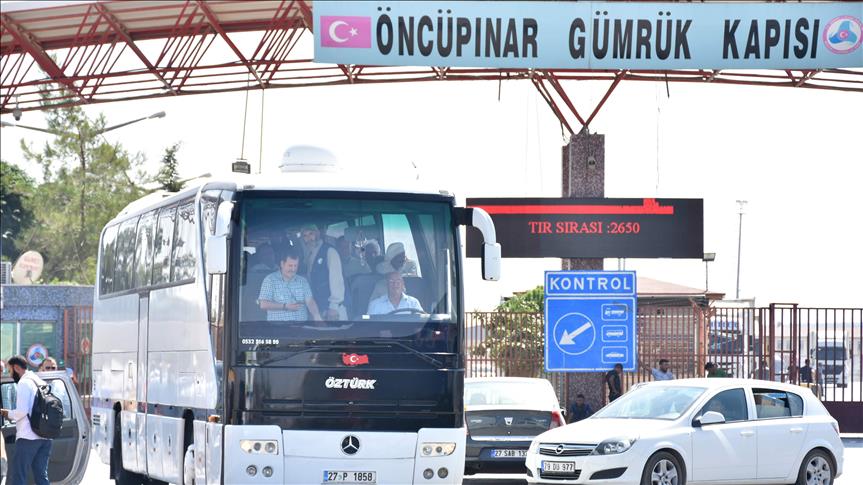 İç savaşın devam ettiği ülkede, Halep'e bağlı Azez ilçesinden Babul Selam Sınır Kapısı'na gelen Suriyeli hacı adayları, buradaki işlemlerinin ardından Öncüpınar Sınır Kapısı'na getirildi.