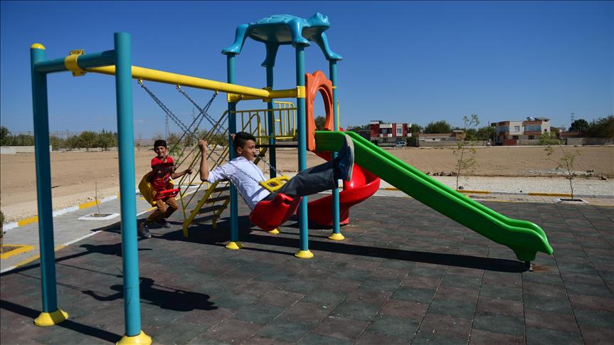 İçişleri Bakanlığınca yapılan görevlendirme sayesinde park ve bahçelerde oyun alanlarına kavuşan Şanlıurfa'nın Suruç ilçesindeki çocukların sevinci yüzlerine yansıyor.