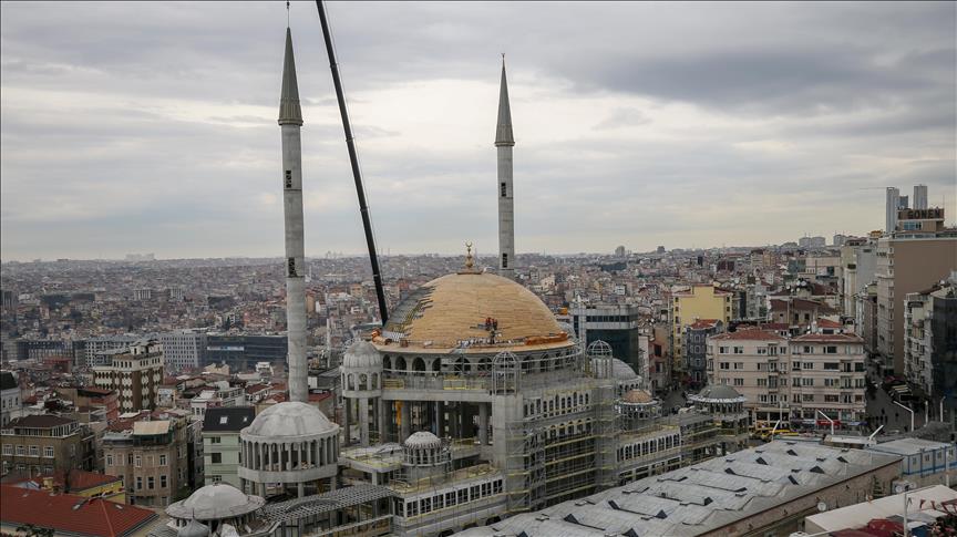 Taksim Camisi'nin minare külahı yerleştirildi
