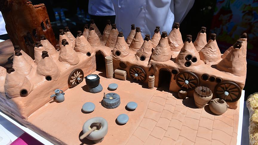 UNESCO "Dünya Miras Geçici Listesi" varlıklar arasında bulunan Göbeklitepe, dünyanın ilk üniversitesi kabul edilen tarihi Harran Üniversitesi ören yeri, Harran Konik Kubbeli Evler ile tarihi Urfa Kalesi şeker hamuruyla anlatıldı.