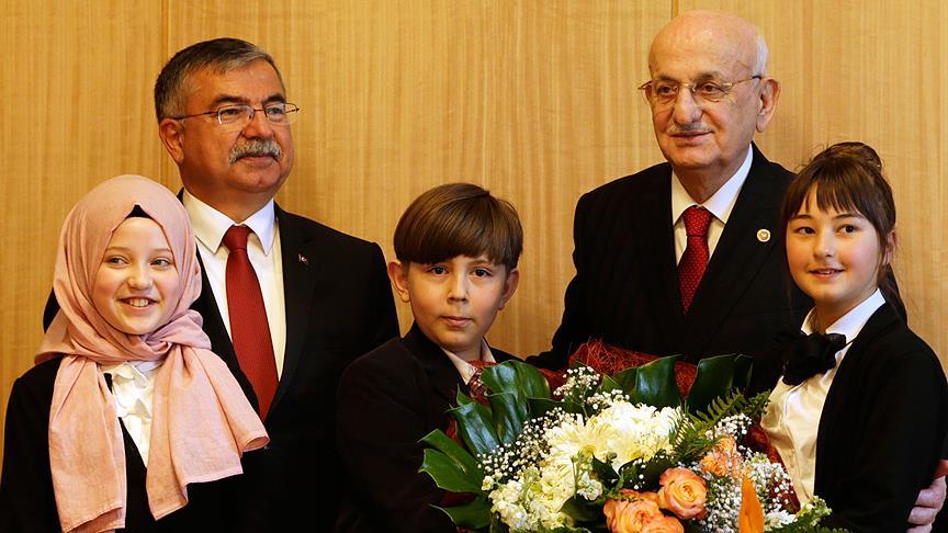 TBMM Başkanı Kahraman, daha sonra öğrencilere çeşitli hediyeler verdi.