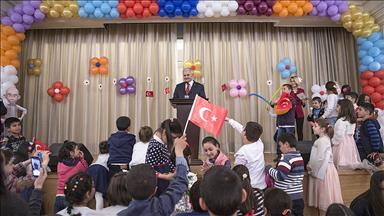 Cumhurbaşkanı Erdoğan, "Birbirinizi çok sevin, incitmeyin. Kimsenin de elini öpmeyin, anne, baba, öğretmen, sadece bunların elini öpeceksiniz." dedi.