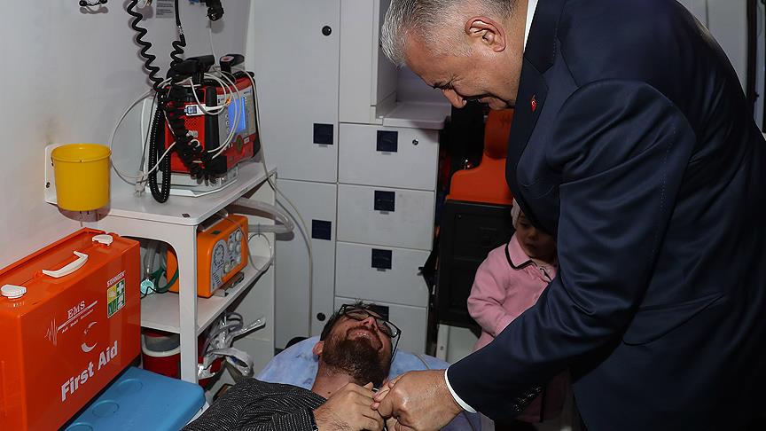 Kazayı gören Yıldırım, makam aracını durdurup yaralıların yanına gitti. Yaralıların sağlık durumları hakkında bilgi alan Yıldırım, kendilerine "geçmiş olsun" dileklerini iletti.