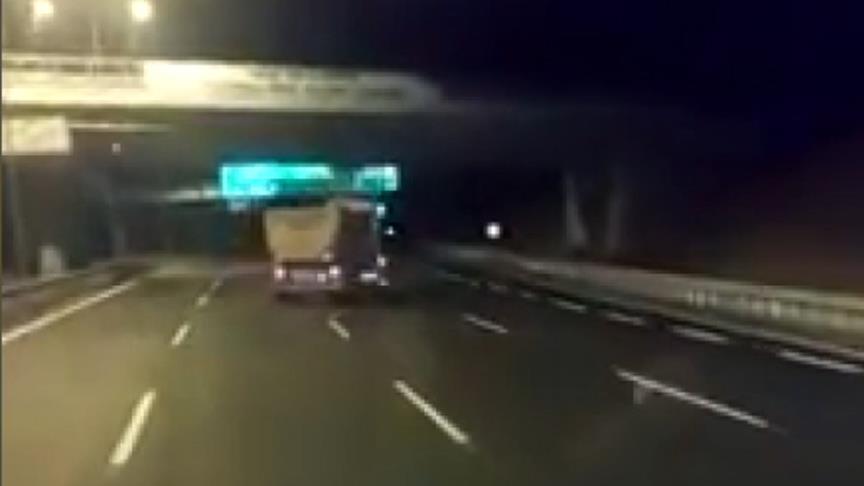 Alınan bilgiye göre, Kuzey Marmara Otoyolu Fenertepe mevkisinde gece saatlerinde bir kamyon şoförünün trafikte yaptığı tehlikeli hareketleri kaydeden bir sürücü, görüntüleri sosyal medyaya yükledi.