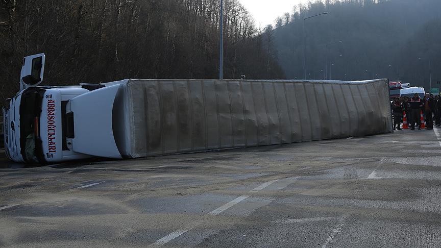 Devrilen tır nedeniyle TEM Otoyolunun İstanbul istikameti ulaşıma kapanırken, kazada tır şoförü ile yanındaki Burak Abbasoğulları yaralandı. Yaralılar, sağlık ekipleri tarafından İzzet Baysal Eğitim ve Araştırma Hastanesi Köroğlu Ünitesine kaldırıldı.