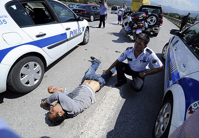 Bayram nedeniyle yoğun olan Ankara şeridinde ilerleyen şüpheli, Düzce sınırında önlem alan ekiplerin ''Dur'' ihtarına uymayarak kaçmaya devam ederken yoldaki birçok araca çarptı. Kaynaşlı gişeleri girişinde trafiğin tamamen durması nedeniyle ilerleyemeyen sürücü, aracıyla bu kez de geri dönmek isterken bir motosiklet ve polis aracına çarptı.