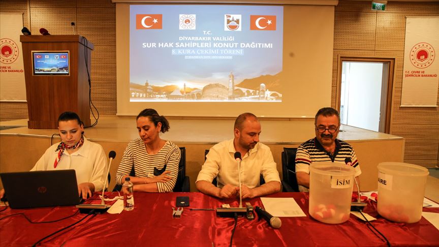 Diyarbakır'ın Sur ilçesinde PKK'lı teröristlerin saldırısı sonucu evleri yıkılan aileler için Çevre ve Şehircilik Bakanlığınca inşa ettirilen 169 konutun kura çekimi yapıldı.