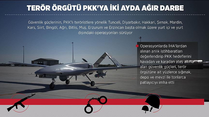 Son dönemde ihbar ya da istihbarat beklemeden zorlu hava ve arazi koşullarına rağmen didik didik terörist arayan ve örgüt mensupları ya da yandaşlarınca "ulaşılamaz", "tespit edilemez" denilen sığınak, depo ve terör örgütü mevzilerini imha eden Jandarma Özel Harekat (PÖH) ve Polis Özel Harekat (JÖH) timleri, silahlı insansız hava araçlarıyla (İHA) terör örgütüne ağır darbe vurdu.