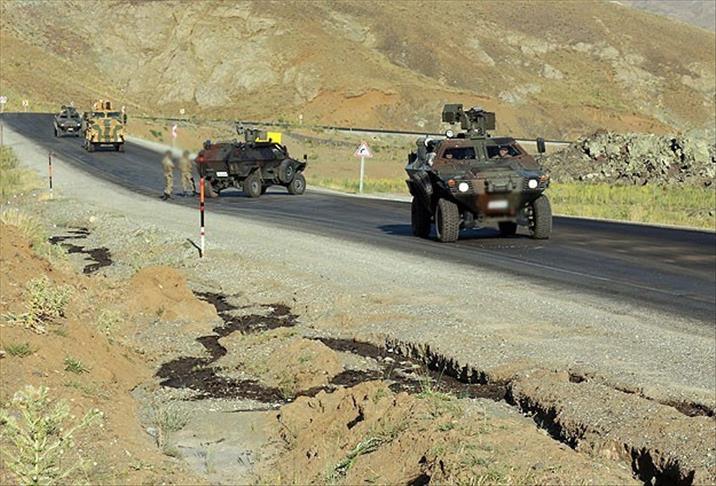 Iğdır Valiliğinden yapılan açıklamada, bu sabah saat 08.45 ile 09.00 arasında Iğdır-Aralık karayolu Çamurlu köyü mevkisinde, Dilucu Karahudut Kapısı'nda vatandaşlara hizmet veren polis memurlarını taşıyan servis aracı ile bu araca koruma görevi yapan Özel Harekat Şube Müdürlüğüne bağlı 2 zırhlı araca terör örgütü mensupları tarafından bombalı saldırı yapıldığı hatırlatıldı.