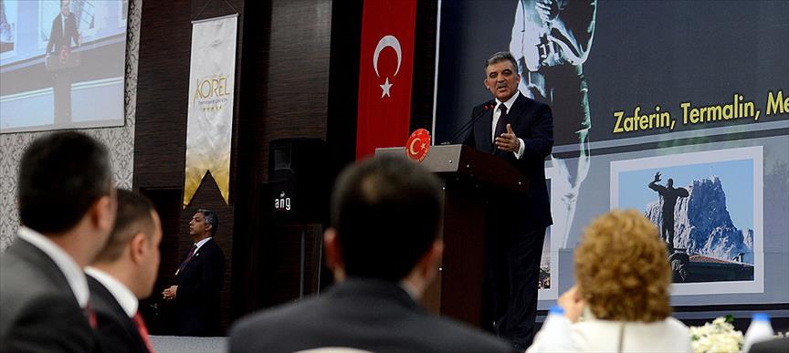 Salona girişinde şehit yakınları ve gazilerin yanına giderek selamlaşan Cumhurbaşkanı Gül, yemek öncesindeki konuşmasında, Türkiye'nin en önemli meselesinin terör olduğuna işaret ederek, şehitlerin acılarının sadece düştüğü yerleri değil tüm Türkiye'yi yaktığını söyledi.