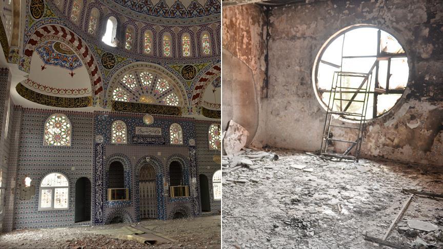 Teröristlerin camilere verdiği zarar ise güvenlik güçlerinin bölgeyi kontrol altına almasıyla ortaya çıktı. Camilerde teröristlerce döşenen olası el yapımı patlayıcılara yönelik arama yapan güvenlik güçleri, yerdeki dini kitapları da kaldırdı.