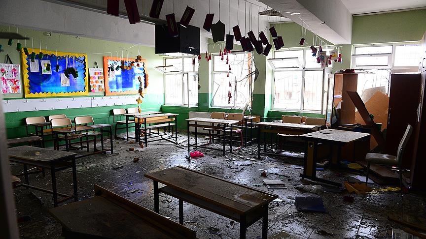 Çatışmaların yoğun olarak sürdüğü Dicle Mahallesi'ndeki Sema Cıngıllıoğlu İlkokuluna geniş güvenlik önlemleri altında ulaşıldı.