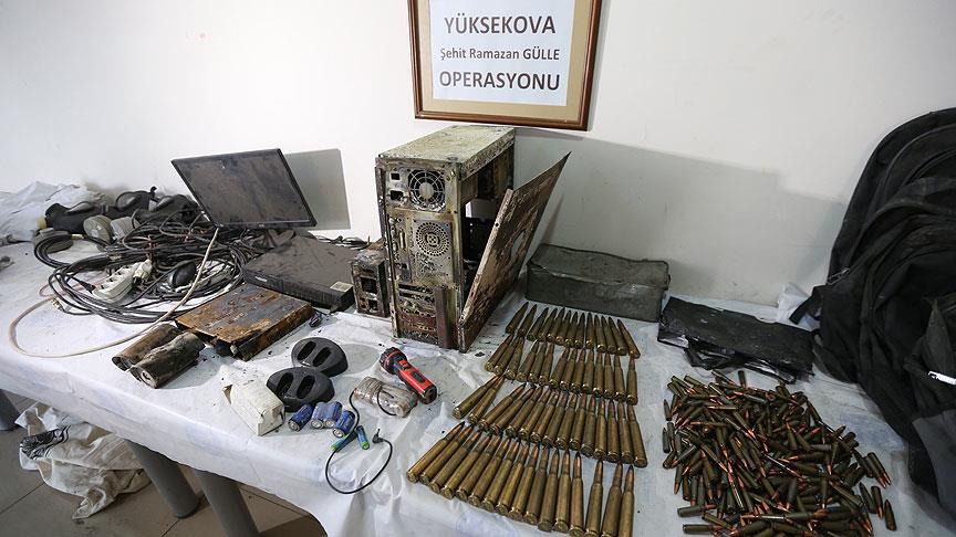 Aramada, inşaatın temel kısmına gizlenmiş bir doçka, 10 kalaşnikof piyade tüfeği, bu silahlara ait 50 şarjör ve 2 bin mermi, 3 çaydanlık içerisine tuzaklanan 10 kilogram el yapımı patlayıcı, patlayıcı yapımında kullanılan çok miktarda malzeme, 2 el bombası, hücum yelekleri, tıbbi yaşam malzemeleri, kamuflajlar, gaz maskeleri, kamera sistemi ve örgütsel dokümanlar bulundu.