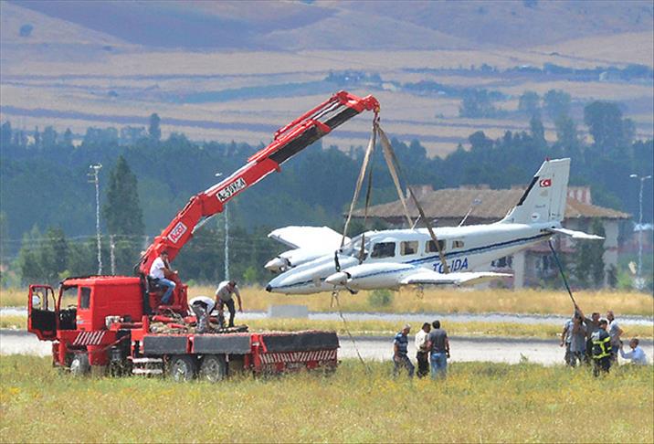 Birdal, pistte kalan eğitim uçağının çekilmesi için çalışmaların devam ettiğini, havalimanında uçuşların kısa süre aksadığını bildirdi.