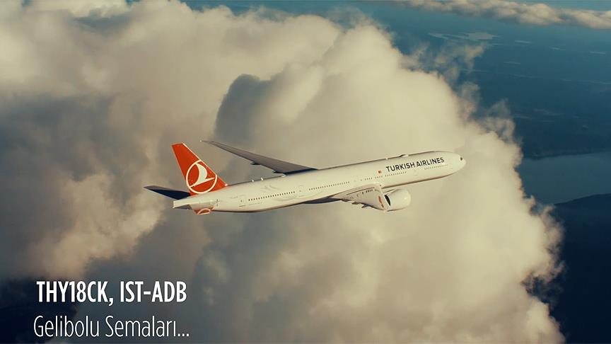 Türk Hava Yolları'nın (THY) İstanbul-İzmir seferini yapan tarifeli uçağı, 18 Mart Şehitleri Anma Günü ve Çanakkale Deniz Zaferi'nin 103. yıl dönümü dolayısıyla özel oluşturulan rotayı takip ederek büyük zaferin yaşandığı Gelibolu semalarında uçtu.