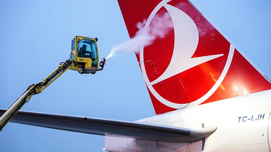 Edinilen bilgiye göre "de-icing" işlemi uygulanan THY uçakları, buzlanmaya karşı glikoz karışımı bir sıvı ile yıkandı.