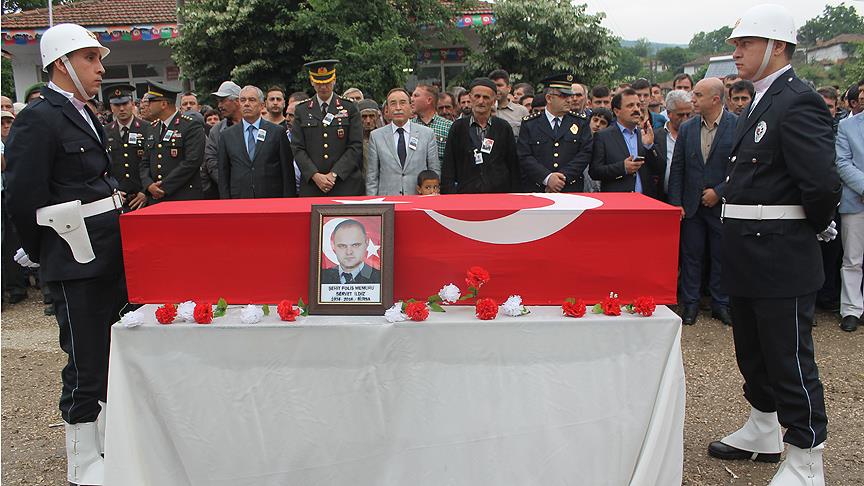 Bursa'da trafik kazasının ardından olay yerinde görevini yürütürken tırın çarpması sonucu şehit olan polis memuru Servet Ildız'ın cenazesi, memleketi Balıkesir'in Manyas ilçesinde toprağa verildi.