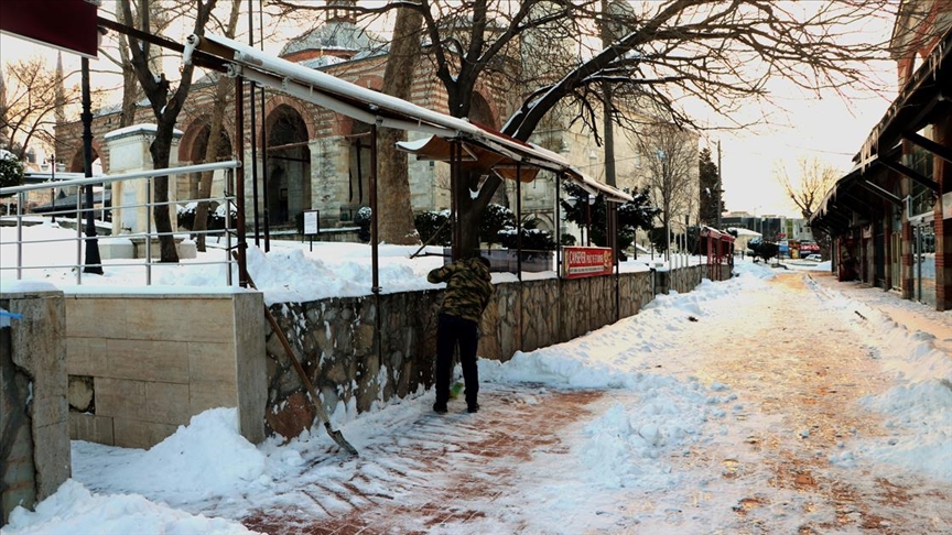 Edirne'de dün etkisini gösteren kar yağışı yerini soğuk havaya bıraktı.