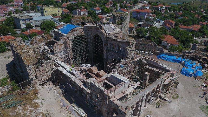 Vakıflar Genel Müdürü Adnan Ertem, Doğu Roma İmparatorluğu tarafından 12. yüzyılda inşa edildiği düşünülen, Fatih Sultan Mehmed'in 1456'da Taşoz, Limni, Semadirek adalarının yanı sıra Cenevizlilere ait Enez'i fethetmesi sonrası camiye çevrilen, Osmanlı döneminde 1700'lü yıllarda birkaç kez onarımdan geçen ve 1965'teki depremde yıkılan tarihi eserdeki restorasyon çalışmalarını inceledi.