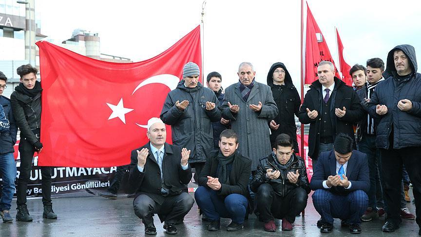 Beşiktaş'taki Dolmabahçe Bezmialem Valide Sultan Camisinde sabah namazını kılan Türkiye Gençlik Vakfı (TÜGVA) üyeleri, Şehitler Tepesinde şehitler ve İslam dünyası için dua etti.