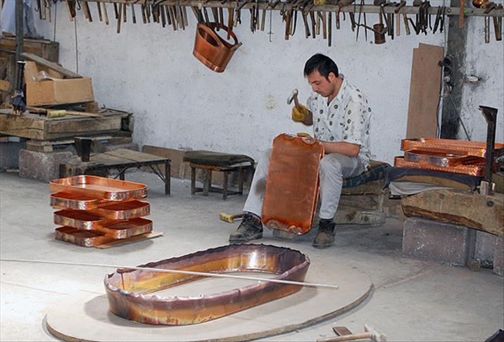 Yozgat'ın Boğazlıyan ilçesinde faaliyet gösteren bir firma, ürettiği bakır masa, tabure, küvet, lavabo ve dekorasyon ürünleri ile bakır işlemeli çok sayıda eşyanın yüzde 90'ını ABD'ye ihraç ediyor.