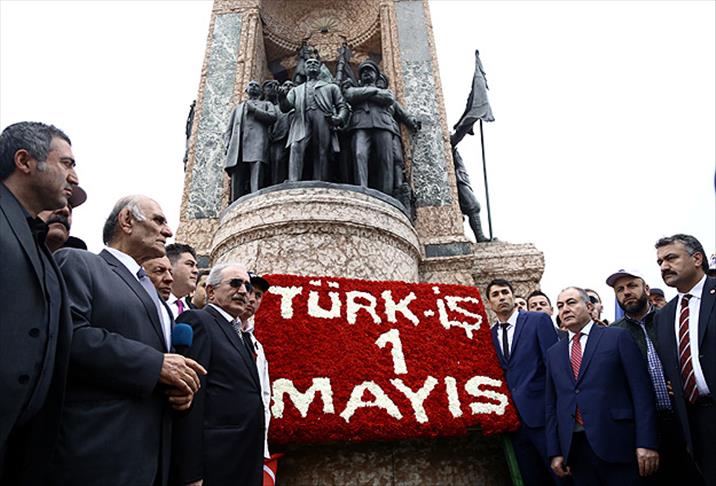 Sendika temsilcileri ve üyeler Kazancı Yokuşu'ndaki anmanın ardından, üzerinde karanfillerle ''Türk-İş 1 Mayıs'' yazılı çelengi Cumhuriyet Anıtı'na bıraktı. Sendika üyeleri, Mustafa Kemal Atatürk, şehit düşen güvenlik görevlileri ve hayatını kaybeden işçiler için bir dakikalık saygı duruşunda bulundu, İstiklal Marşı'nı okudu. Sendika üyeleri daha sonra Taksim Meydanı'ndan ayrıldı.
