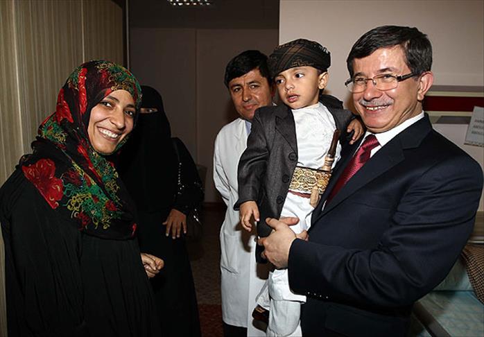 Nobel Barış Ödülü sahibi Yemenli gazeteci Tevekkül Karman, Dışişleri Bakanı Ahmet Davutoğlu ile Türkiye'de tedavi gören Yemenli hastaları ziyaret etti.