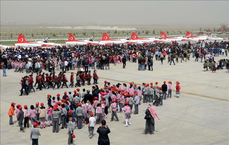 Etkinlikler kapsamında Konya Havaalanı'nda düzenlenen Türk Yıldızları gösterisi için, 40 ülkeden Konya'ya gelen çocuklar ile çok sayıda ilköğretim okulu öğrencisi minibüslerle aprona getirildi. Türk Yıldızları'nın gösterisini izlemek için apronda bekleyen çocuklar ve töreni izlemeye gelen vatandaşlar, hızını giderek artıran fırtına nedeniyle zaman zaman yürümekte bile zorlandı.